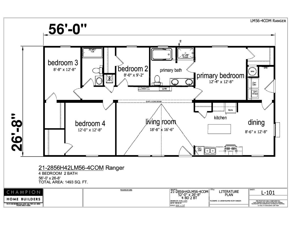 Ranger / 28 x 56 / 4 Bed 2 Bath (1,493 Sq Ft)