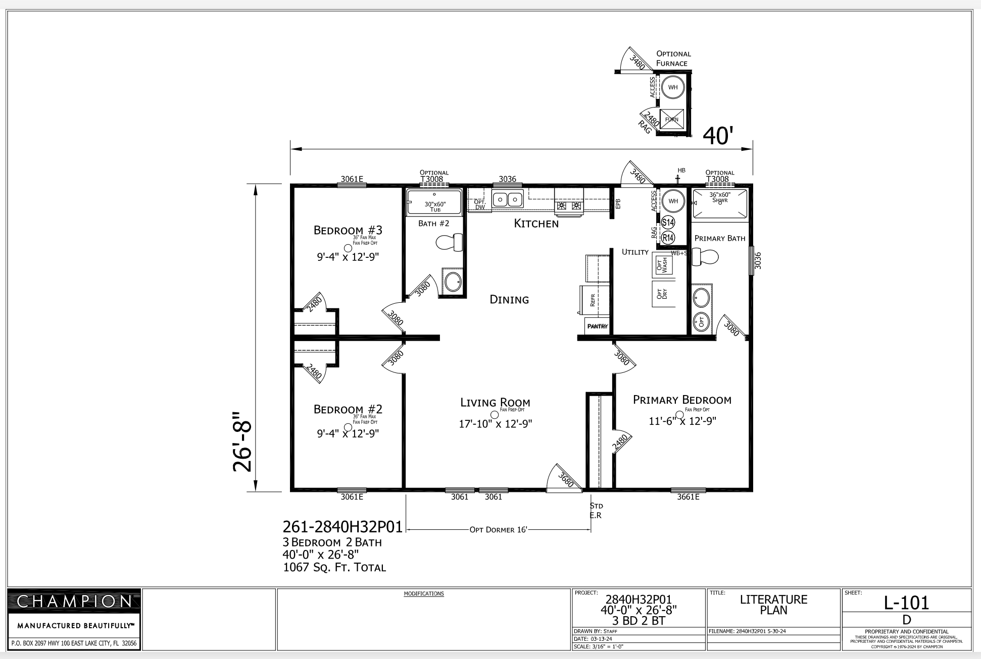 Fidelis / 28 x 40 / 3 Bed 2 Bath (1,067 Sq Ft)